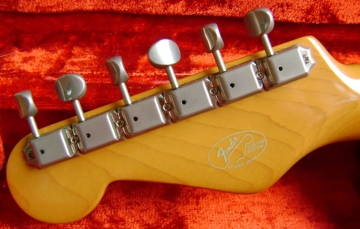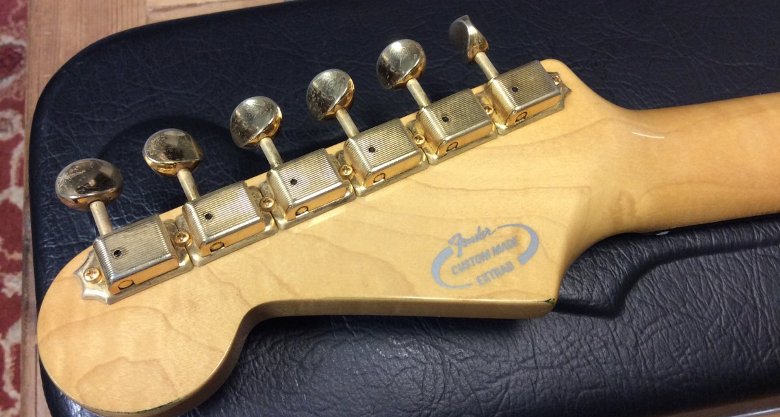 Headstock: Small Pre CBS style Gold Spaghetti Logo 1 round string tree