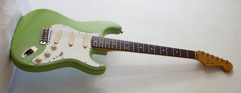 Still far away from a 62 Strat this one has Vintage Noiseless pickups and what is described by Fender Japan as The ST62 is finished with a polyester finish with a very thin coating. The neck finished so thin that you can also see the wood grain will feel as if you have played it. The outer circumferential angle of the head is also finished so as not to drop too much.