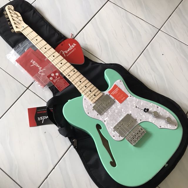 This is an FSR said to be limited to 125 units for Europe I don't know how many elsewhere, but I have seen too many retailers with them for sale to believe that there are so few. In an interview Allen Abbassi a Director of product management at Fender confirms that a limited number were imported to the USA but doesn't say how many. A striking Thinline with gold hardware and filtertron style pickups.